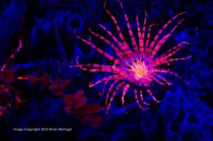 Large Flower Coral, Day Fluorescing, Palau, Rock Islands-World Heritage Site, Micronesia Fluorescence diving is almost universally referred to as UV diving but in fact it is rarely done using UV